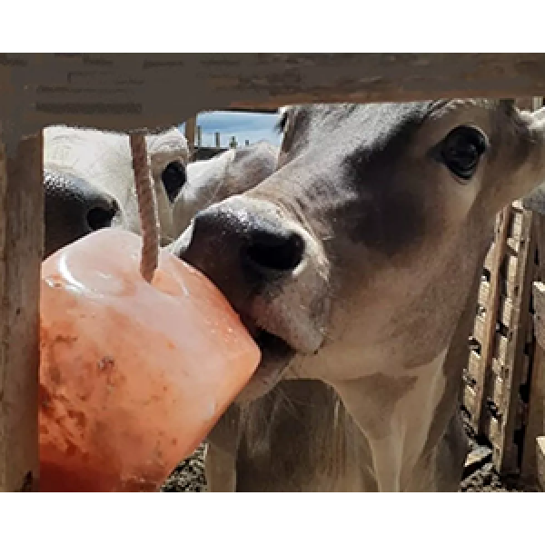 Acompanha cordão de suporte para pendurar em cochos ou árvores, facilitando o acesso para os animais lamberem.