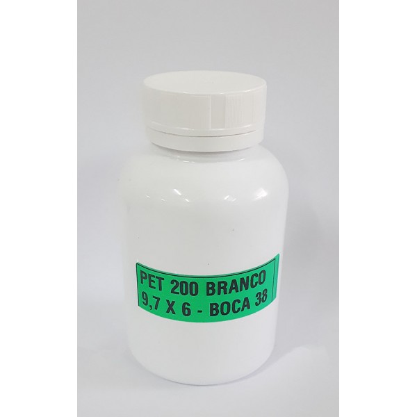 FRASCO FARMACEUTICO PET 200 BRANCO - TAMPA BRANCA ROSCA LACRE - PACOTE COM 10 un