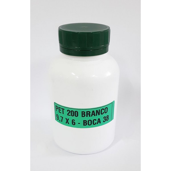 FRASCO FARMACEUTICO PET 200 BRANCO - TAMPA VERDE ROSCA LACRE - PACOTE COM 10 un