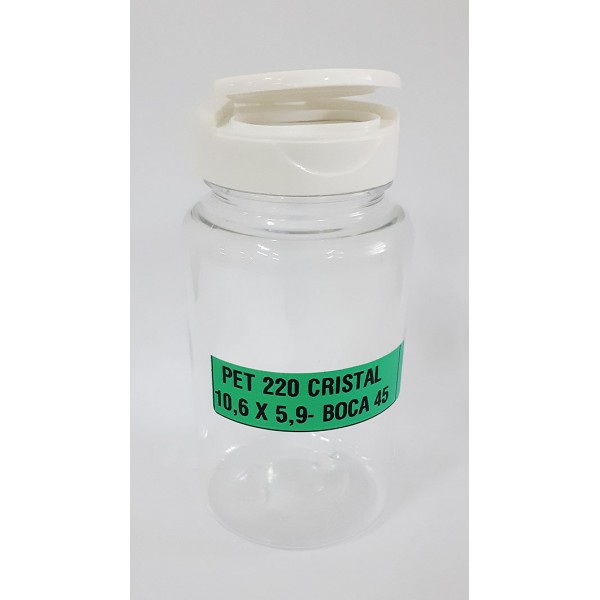 FRASCO FARMACEUTICO PET 220 CRISTAL - TAMPA FLIP BRANCA - PACOTE COM 10 un