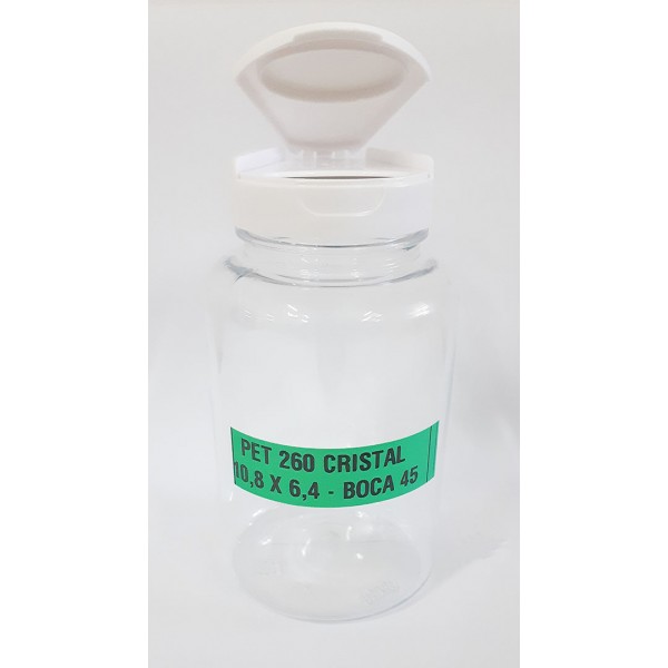FRASCO FARMACEUTICO PET 260 CRISTAL - TAMPA FLIP BRANCA - PACOTE COM 10 un