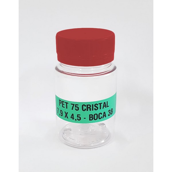 • FRASCO FARMACEUTICO PET 75 CRISTAL - TAMPA VERMELHA ROSCA LACRE - PACOTE COM 10 un