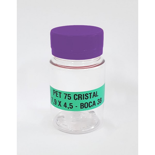 FRASCO FARMACEUTICO PET 75 CRISTAL - TAMPA ROXA ROSCA LACRE - PACOTE COM 10 un