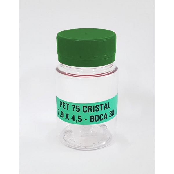 • FRASCO FARMACEUTICO PET 75 CRISTAL - TAMPA VERDE ROSCA LACRE - PACOTE COM 10 un